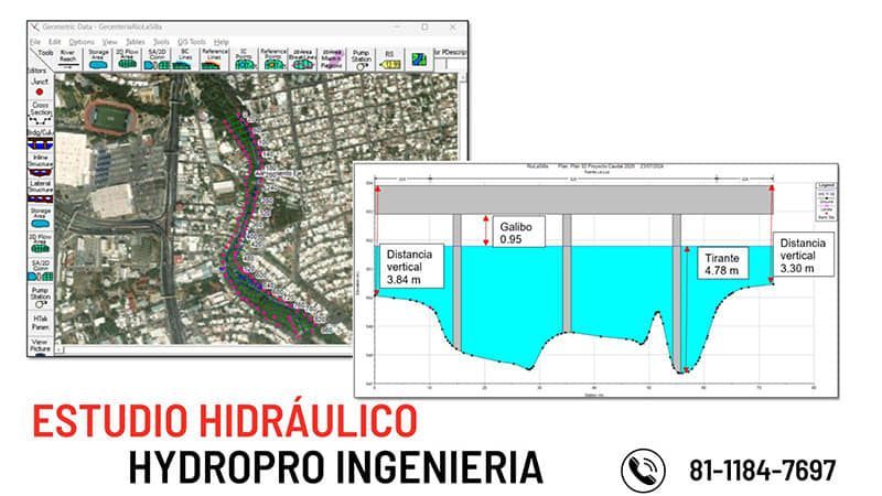 Nuestro equipo utiliza HEC-RAS para la simulación hidráulica en cauces naturales y estructuras, evaluando el comportamiento del flujo bajo diferentes escenarios. Estos modelos son esenciales para el diseño seguro y funcional de puentes, vialidades, fraccionamientos y sistemas de drenaje pluvial.